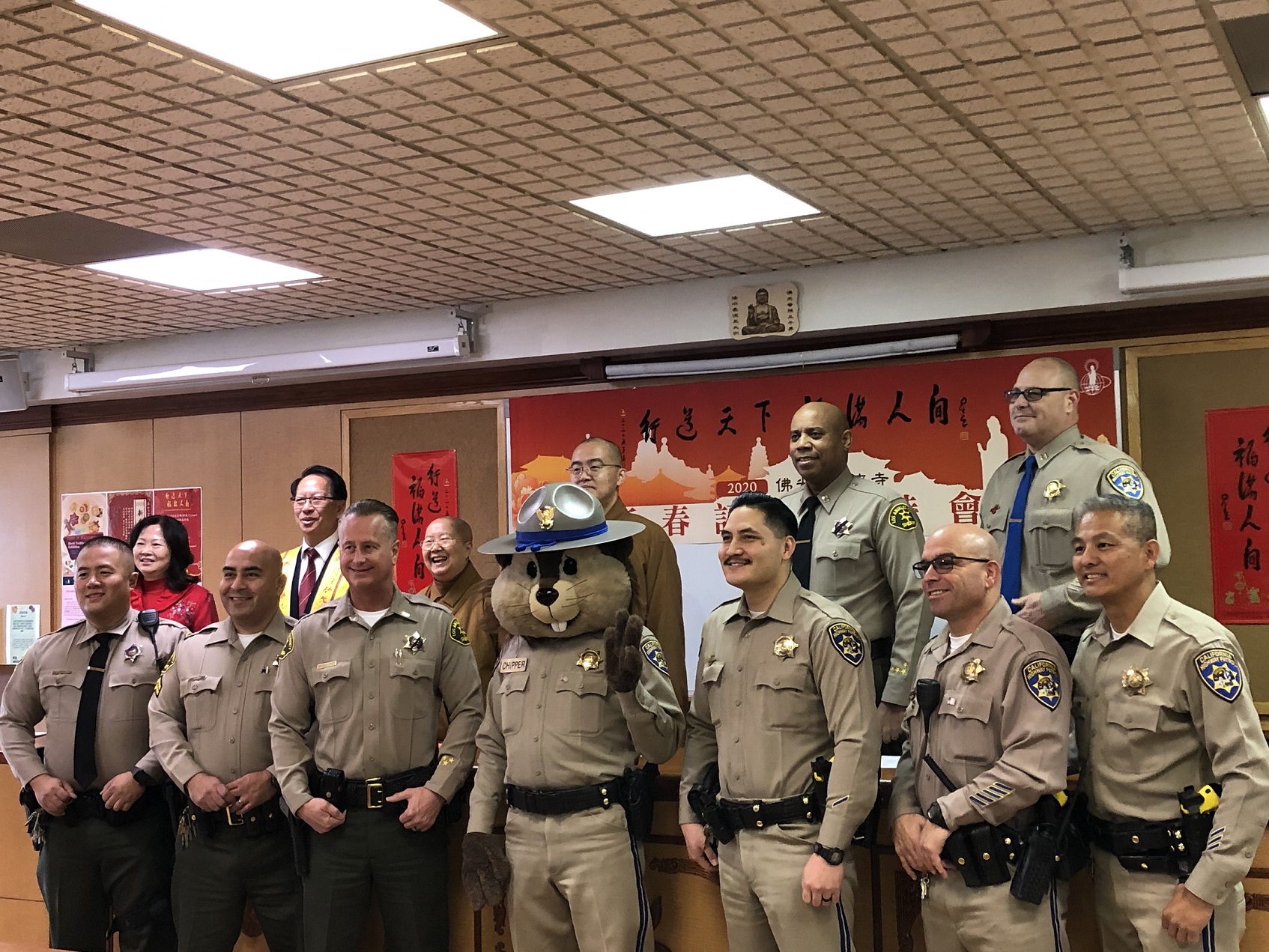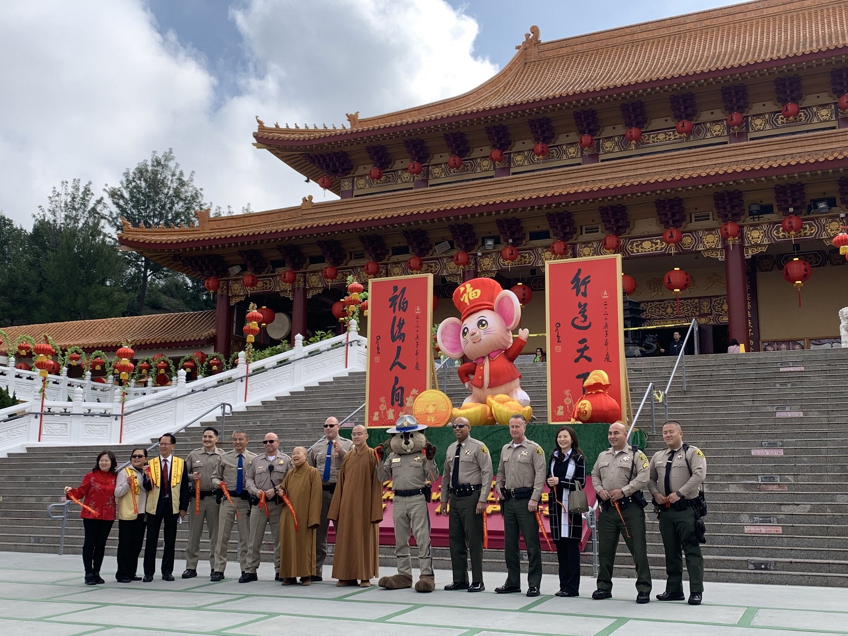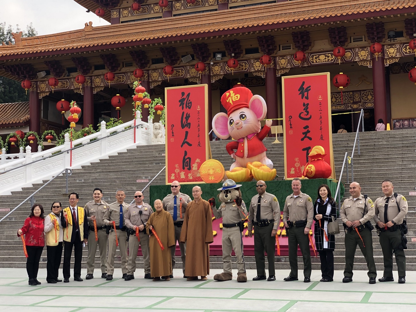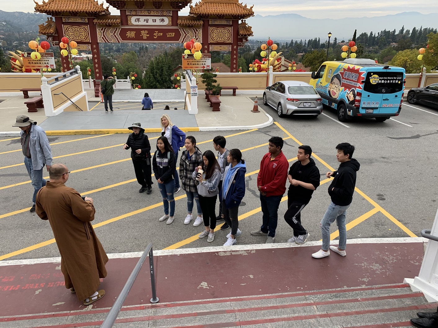 2020年鼠年新春期间,华兴保险为西来寺做义工,协助指挥交通车及维护安全。华兴保险在过去的二十多年坚持为西来寺提供服务,不仅协助预定交通车,也组织当地高中的志愿者参与。希望在提供专业的保险服务之外,能透过参与公益活动和公众事务,更好的为南加州华人社区服务。