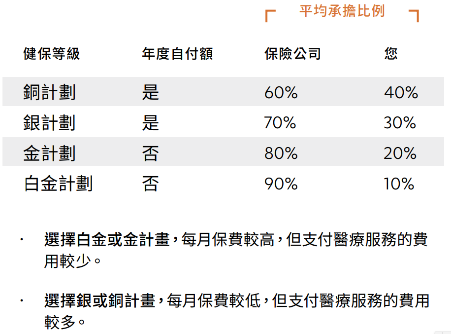 2019年加州健康保险有4种等级:铜、银、金、白金。