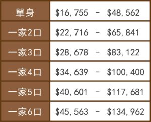 如果您的家庭报税年收入在右表区间,请特别向健保经纪咨询您可获得的保费补助情况。