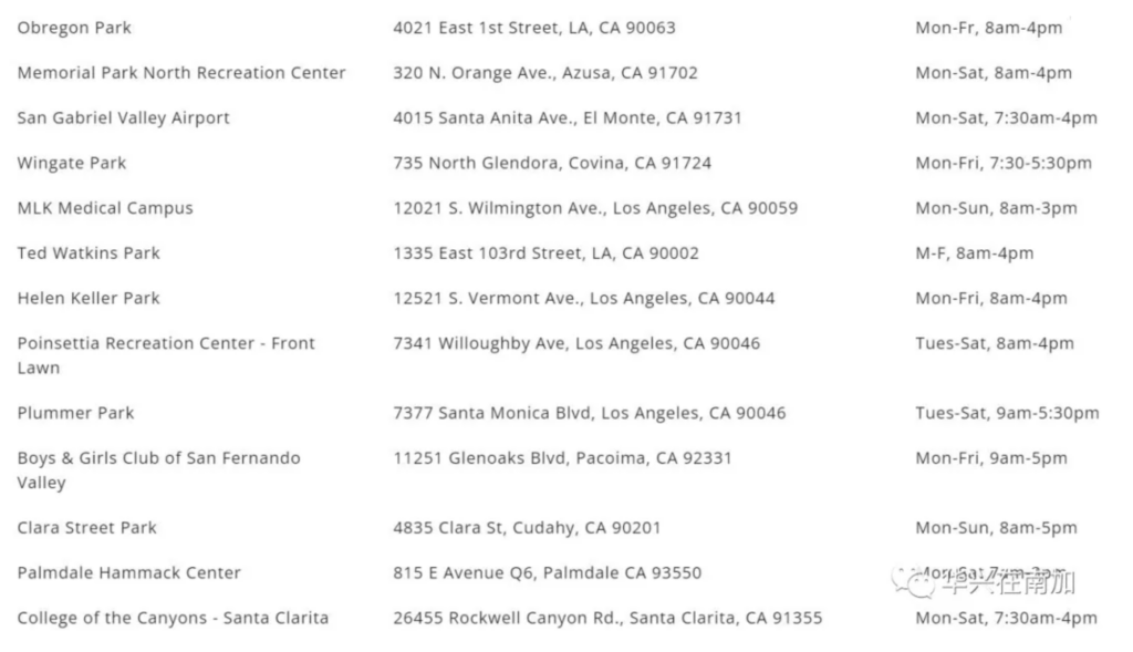 13个检测领取点 (https://covid19.lacounty.gov/la-county-pick-up-testing-kit-program/)